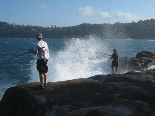 Friends of mine fishing off the rocks at Whale Beach.