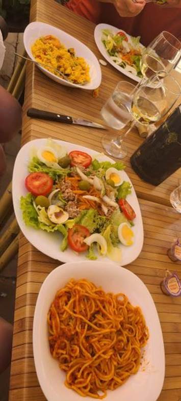 night before, so we ordered wine and snacks and joined them!