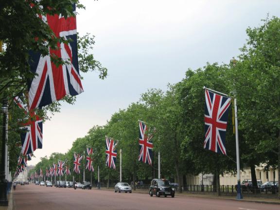 The road leading up to Buckingham Palace