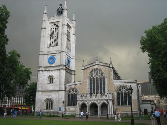 St. Margaret's Church on the grounds of Westminster Abbey. Stands between Westminster Abbey and the Houses of