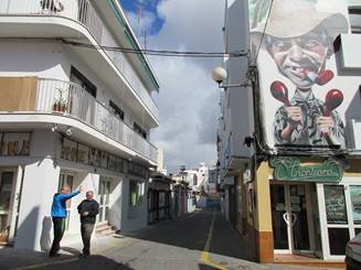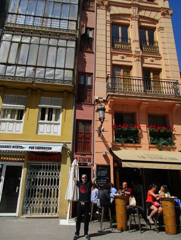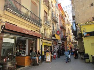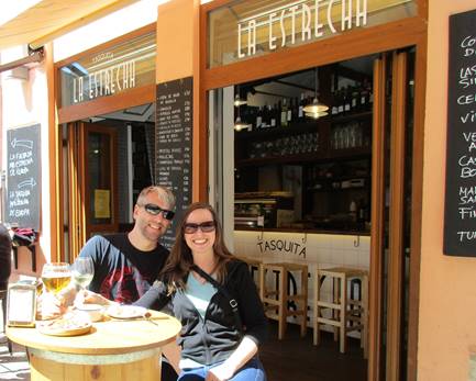My husband Chuck and I having tapas at a pub called La Estrecha (meaning the narrow one) which is named for